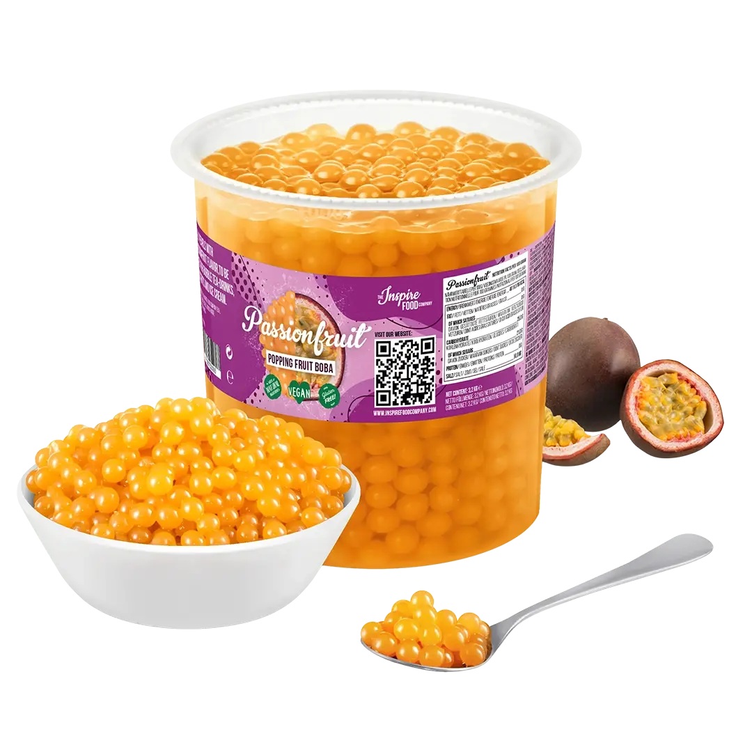 Pärlorna med passionsfrukt ger pigg syra och tydlig tropisk arom – perfekt för att balansera sötare baser som milk tea, läsk och smoothies. Serveringsklara, stabila och lätta att arbeta med i både kallt te och kolsyrade drinkar.