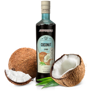 Sirup Kokos med smak av kokosnöt. En kombination av söt, nötaktig och mild smak. Kokosnöt är utsökt i desserter. Den används också för att ge en exotisk touche till en populär sommardrink, designad för att karakterisera kalla drycker som iste, iskaffe och bubbelte.