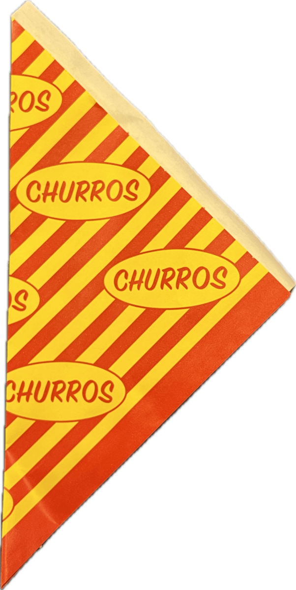 Strutar i 10-pack att servera churros i! De är gjorda av rött och gult fettavvisande papper.