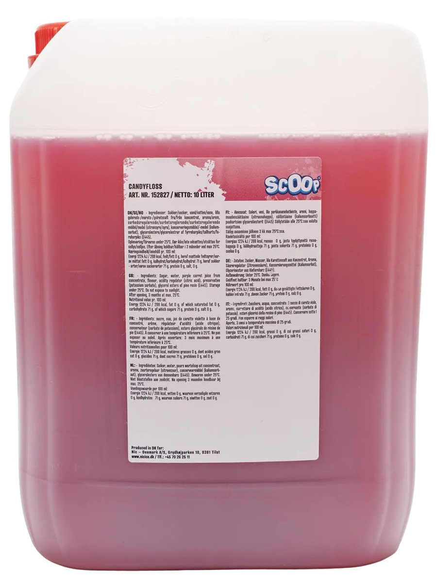 Scoop Candyfloss är ett lekfullt och annorlunda koncentrat som ger rosa slush med smak av sockervadd. Den intensiva färgen och den söta, nostalgiska smaken gör den till en riktig publikfavorit som för tankarna direkt till tivoli, karuseller och sommarglädje. Bara en titt på den färgglada, iskalla drycken får kunder att stanna till – och den söta, mjuka sockervaddssmaken gör att de vill komma tillbaka för mer.
