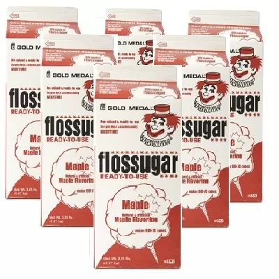 Flossugar Maple är ett finkornigt socker till för att göra sockervadd med smak av lönnsirap och ljusbrun färg. Sockret är färdigt att använda och är förpackat i ett smidigt och lätthanterligt TetraPak. Hela paketet räcker till att göra 60-70 färdiga sockervadd som får lönnsirapsmak! Allt du behöver göra är att öppna förpackningen och hälla sockret direkt i sockervaddsmaskinens spinnarhuvud, för att efter ett par minuter kunna fånga upp det på en strut eller pinne.